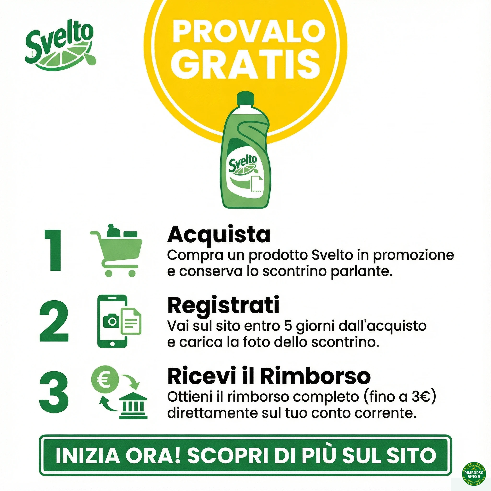 Compra 1 prodotto Svelto (Concentrato Titanium, Pump o Concentrato) nei negozi aderenti o e-commerce italiani per rimborso fino a 3€ (100%) - PARTECIPA sul sito ufficiale. Verifica i prodotti validi nella tabella qui sotto.